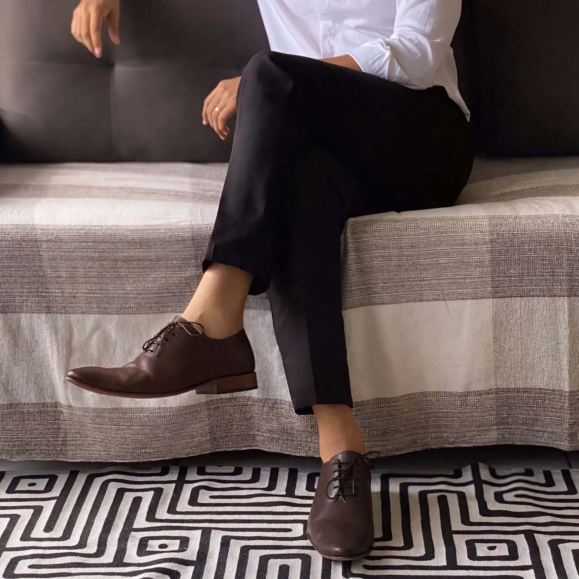 Solado: Em couro com salto de madeira e capa de borracha, colado e costurado em toda parte inferior (garantindo segurança e durabilidade).